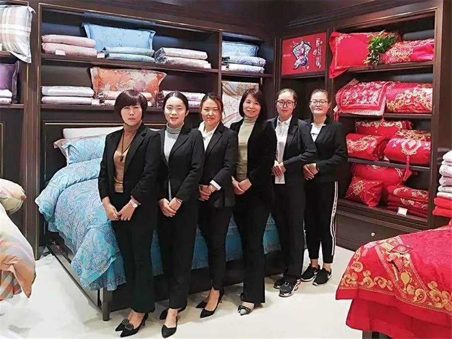 賈:創業確實蠻辛苦的,我在做家紡以前從事的是酒店行業,這個跟家紡完全是兩個不同的領域,所以在剛自主經營長葛專賣店的時候也遇到了不少的困難,比如導購的培訓、營銷活動的策劃及備貨等等,好在總公司給予了很大的支持與幫助。特別是近兩年,公司更加注重對我們加盟商的支持力度。每次活動前期,公司都會派業務督導過來和我一起策劃,教我分析總結合理備貨。前段時間,長葛一峰城市廣場專柜擴店重裝采用了總部新的店鋪形象,同時,總部還在細節處為我進行了量身定制,能夠更好地進行陳列,讓我以嶄新的姿態去迎接更高的挑戰。所以總的來說,我非常感謝公司對我的用心,謝謝!